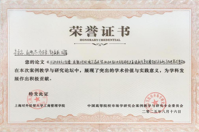 本屆論壇經嚴格評審,12篇錄用論文入選大會宣講環節,6篇論文榮獲優秀論文獎(教學型/研究型案例各3篇)。工商管理學院2024級MBA研究生趙曉冬與郭庭甫(導師:朱宏淼)參與撰寫的論文《從孤獨到傳播:醫聯網環境下存在性孤獨驅動老年群體失真健康信息傳播的路徑機制與治理范式重構》榮獲“優秀論文獎”。該論文依托國家自科重大項目(編號:72293580)與教育部哲學社會科學研究重大課題攻關項目(編號:24JZD040),基于質性研究與多案例分析,深入揭示了老年群體通過醫聯網傳播失真健康信息的深層作用機制,在治理路徑上追求人文關懷與技術干預并重。