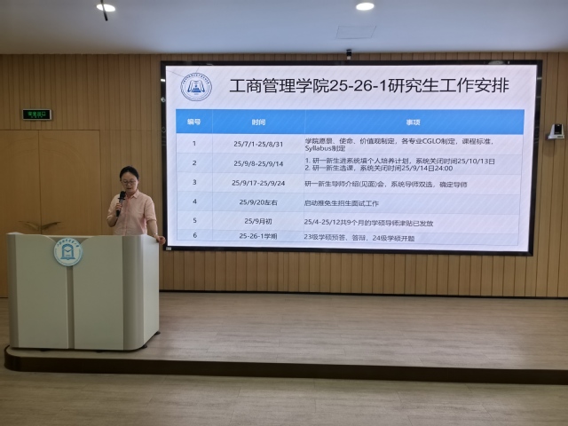 副院長楊軍敏對新學(xué)期研究生工作及國際認(rèn)證工作的各項重點(diǎn)任務(wù)進(jìn)行統(tǒng)籌規(guī)劃與詳細(xì)部署。她指出新學(xué)期將把AACSB國際認(rèn)證作為重要抓手,加快搭建學(xué)院愿景、使命、價值觀體系框架,同時細(xì)化各專業(yè)課程標(biāo)準(zhǔn),為高質(zhì)量人才培養(yǎng)提供制度保障。針對研究生新生培養(yǎng),將通過組織培養(yǎng)計劃填報、選課指導(dǎo)、導(dǎo)師介紹會等系列活動,有序完成新生導(dǎo)師雙選,確保培養(yǎng)指導(dǎo)關(guān)系順利建立。會上還介紹了新一級學(xué)碩新生招錄情況,2025年新生生源涵蓋多個專業(yè),國際學(xué)生比例明顯上升,生源結(jié)構(gòu)持續(xù)優(yōu)化,為學(xué)院學(xué)科建設(shè)與國際化發(fā)展增添了新動力。