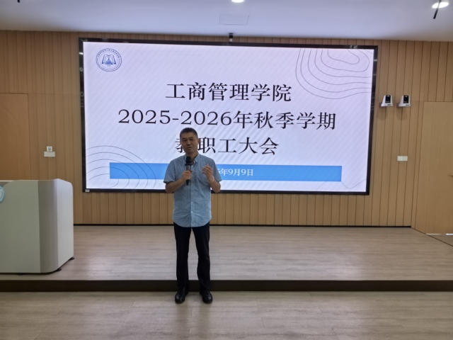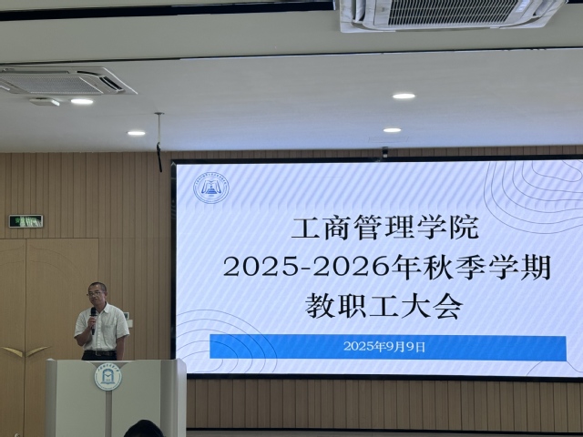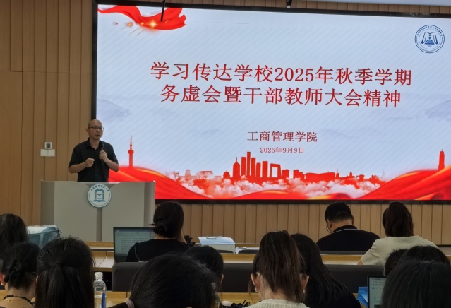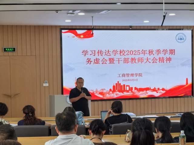 9月9日下午,工商管理學(xué)院在學(xué)思樓D1室召開新學(xué)期第一次全院教職工大會,學(xué)習(xí)傳達(dá)學(xué)校2025年秋季學(xué)期務(wù)虛會暨干部教師大會精神,全面部署學(xué)院本學(xué)期重點(diǎn)工作。