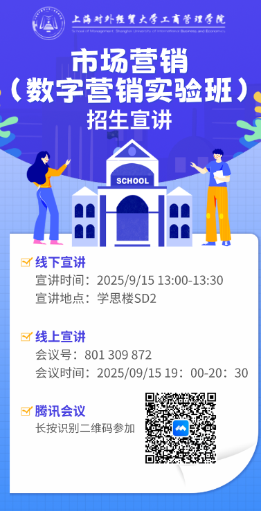 3. 擬參加數(shù)字營(yíng)銷實(shí)驗(yàn)班選拔的2025新生可在入學(xué)報(bào)到時(shí)根據(jù)相關(guān)要求自愿報(bào)名。