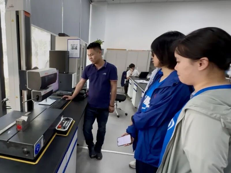 此外,調(diào)研小組還前往淅減檢測中心參觀交流。據(jù)檢測部門負(fù)責(zé)人介紹,為提升檢測效能,流程中大量引入自動(dòng)化設(shè)備,包括自動(dòng)尺寸測量系統(tǒng)、影像投影儀、二維及三維輪廓測量儀等。這些設(shè)備通過編程可實(shí)現(xiàn)高精度、高效率的數(shù)據(jù)抓取與處理,相較傳統(tǒng)人工測量,速度更快、穩(wěn)定性更強(qiáng),尤其適用于復(fù)雜工件及細(xì)小結(jié)構(gòu)的精密檢測。同時(shí),隨著智能化設(shè)備的廣泛應(yīng)用,檢測人員除需掌握基礎(chǔ)測量工具的使用方法外,還須具備一定的編程、系統(tǒng)操作及圖紙解讀能力,以便更好地配合設(shè)備完成檢測任務(wù)。