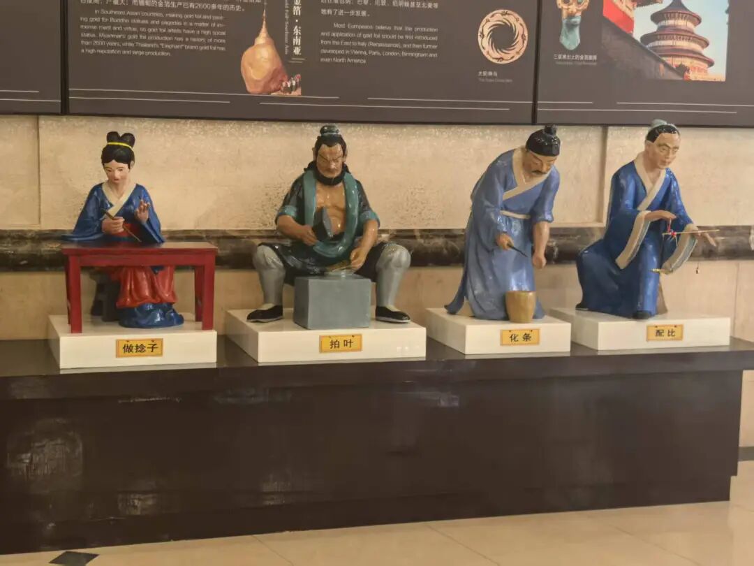 在藝術(shù)館的“金箔生產(chǎn)工藝”展區(qū),你能近距離感受南京金箔鍛制技藝的千錘百煉。這門非遺手藝需歷經(jīng)黃金配比、化金條、拍葉、做捻子、落金開子、打金開子、裝捻子、炕統(tǒng)、打了戲、出具、切金箔等十一道核心工序。