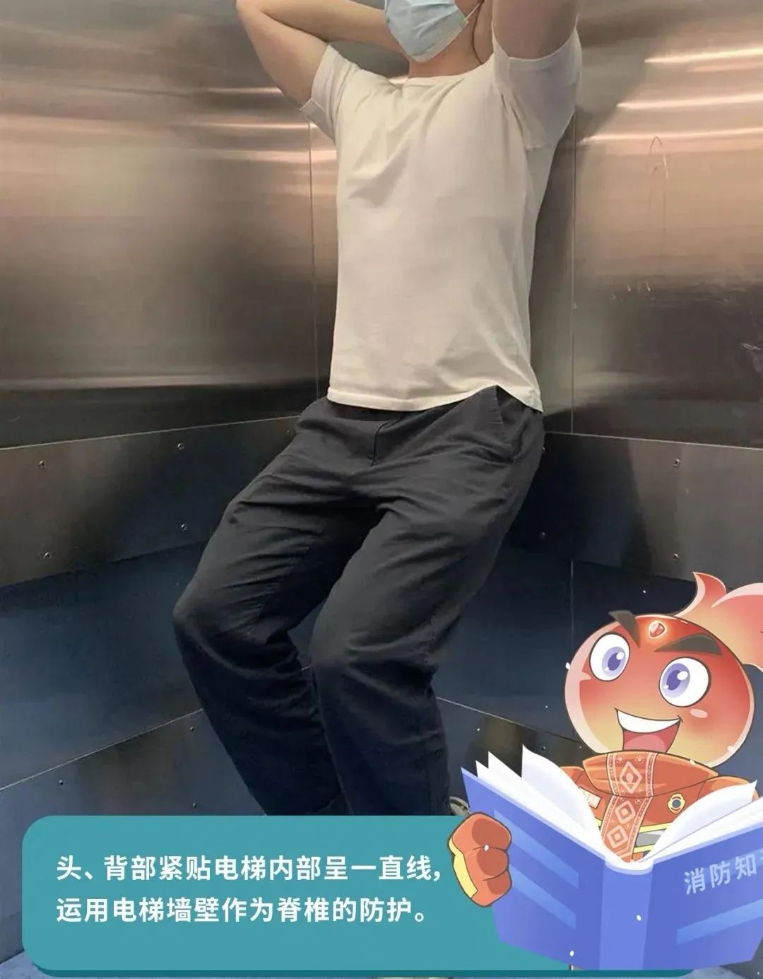 頭、背部緊貼電梯內部