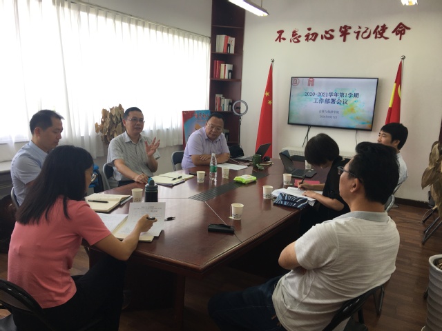 在領(lǐng)導(dǎo)班子工作部署會(huì)議上,會(huì)展與旅游學(xué)院黨總支書(shū)記武增勇首先傳達(dá)了9月3日學(xué)校黨務(wù)工作例會(huì)會(huì)議精神和9月4日學(xué)校黨委擴(kuò)大會(huì)議精神,并對(duì)新學(xué)期工作提出了總體要求。學(xué)院班子成員認(rèn)真學(xué)習(xí)了兩次會(huì)議的精神,并就《教師分類管理考核》和《教師工作量管理辦法》征求意見(jiàn)稿進(jìn)行了深入討論。在此基礎(chǔ)上,班子成員就自己分管的工作,圍繞本學(xué)期的工作重點(diǎn)和計(jì)劃做了交流發(fā)言。會(huì)議還就疫情防控、績(jī)效考核和額度發(fā)放、教師激勵(lì)計(jì)劃、教育教學(xué)質(zhì)量工程、國(guó)際化認(rèn)證、就業(yè)促進(jìn)等專題進(jìn)行了研究。