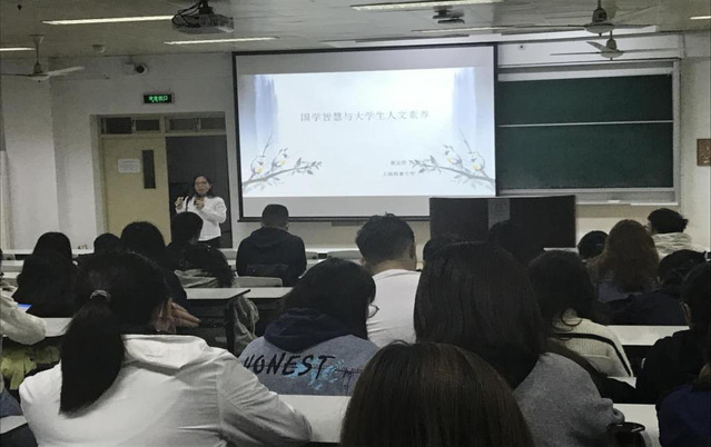 崔老師從當代大學生如何更好的進行成長這一問題入手,引導同學們在國學知識中領略國學智慧,通過學習國學知識,學會做人。