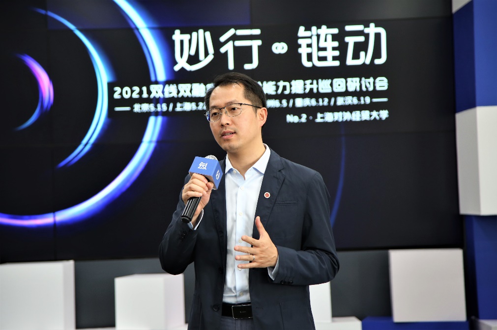朱建明處長(zhǎng)對(duì)各位與會(huì)嘉賓表示歡迎和感謝,并詳細(xì)介紹了上海對(duì)外經(jīng)貿(mào)大學(xué)本科人才培養(yǎng)特色和實(shí)驗(yàn)室建設(shè)情況。上海對(duì)外經(jīng)貿(mào)大學(xué)從1994年成立第一個(gè)國(guó)際貿(mào)易仿真實(shí)驗(yàn)室開(kāi)始,一直努力推進(jìn)實(shí)驗(yàn)室和實(shí)踐基地建設(shè)。他表示,在“十四五”時(shí)期,學(xué)校將緊扣時(shí)代發(fā)展趨勢(shì),加大力度培養(yǎng)拔尖型人才和數(shù)字經(jīng)濟(jì)人才,未來(lái)將持續(xù)推進(jìn)產(chǎn)教融合建設(shè)工作。