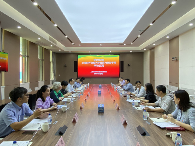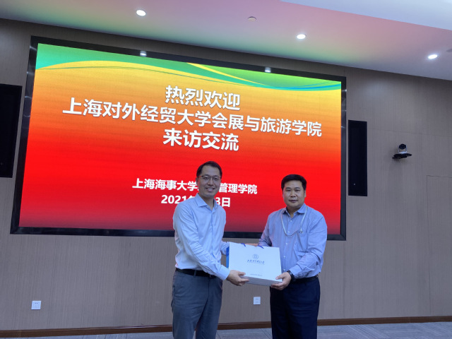 2021年6月3日上午,上海對外經(jīng)貿(mào)大學(xué)會(huì)展與旅游學(xué)院一行9人前往上海海事大學(xué)調(diào)研。上海海事大學(xué)黨委副書記、紀(jì)委書記嚴(yán)大龍,辦公室副主任、校友聯(lián)絡(luò)處副處長陳佳兒,經(jīng)濟(jì)管理學(xué)院黨委書記楊麗萍、院長劉斌及經(jīng)濟(jì)管理學(xué)院相關(guān)教師接待了我校調(diào)研團(tuán)隊(duì)。我校會(huì)展與旅游學(xué)院院長王春雷及專業(yè)教師和上海海事大學(xué)的領(lǐng)導(dǎo)們共同出席了此次調(diào)研座談會(huì)
