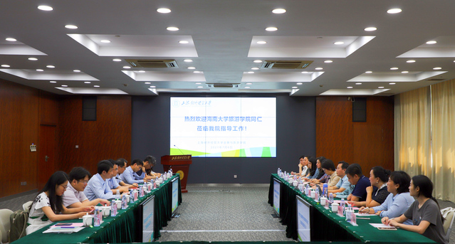 2021年7月6日上午,海南大學旅游學院黨委書記韓力光、旅游學院副院長張珊、旅游管理碩士點負責人王紅等一行12人來我院走訪交流。上海對外經(jīng)貿(mào)大學會展與學院黨總支書記談華、院長王春雷、副書記張麗、副院長田紀鵬和相關老師出席會議。會議由副院長田紀鵬主持。