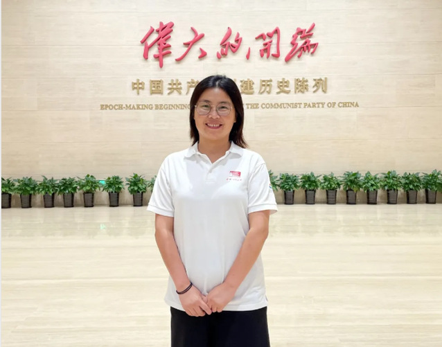 “我的崗位是場館服務(wù)。從6月培訓(xùn),到8月份,我已經(jīng)服務(wù)四場。具體來講,根據(jù)《中共一大紀(jì)念館志愿者章程》和《場館志愿者上崗機制》的內(nèi)容和要求,在分配崗位的工作區(qū)域維持秩觀眾參觀途中的秩序,根據(jù)疫情防控的需要提醒觀眾全程佩戴口罩,并解答場館信息等相關(guān)問題。我有幸加入“一大”紀(jì)念館志愿者隊伍,和自己的專業(yè)知識結(jié)合,充滿信心的在黨的誕生地用愛心、細(xì)心、耐心為入館參觀的觀眾服務(wù),每次上崗服務(wù),都會有震撼:體悟真理的‘甜’味,仰望信仰的力量,感念‘百年奮斗’來之不易,我輩理應(yīng)自強不息,去看‘星辰大海’!”