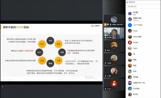 在線教學(xué)持續(xù)進(jìn)行一個(gè)多月之際,4月15日下午,會(huì)展與旅游學(xué)院邀請(qǐng)智慧樹(shù)平臺(tái)培訓(xùn)教師姜杉就混合式金課建設(shè)政策、平臺(tái)新功能使用和AI在混合式課程建設(shè)中的作用等內(nèi)容進(jìn)行了專題培訓(xùn)和研討。培訓(xùn)研討會(huì)由副院長(zhǎng)田紀(jì)鵬主持。