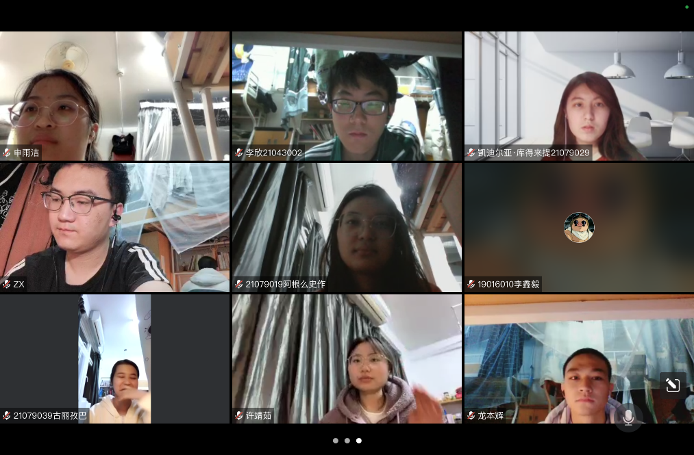 與會師生就近階段在校同學的學習、生活及就業等問題展開討論。預科生凱迪爾亞表示:當前正處于疫情防控關鍵期,學校和學院仍密切關注預科班同學的飲食生活問題。封校期間,與教師的聯系和反饋渠道也一直保持暢通,及時處理生活和學習問題。