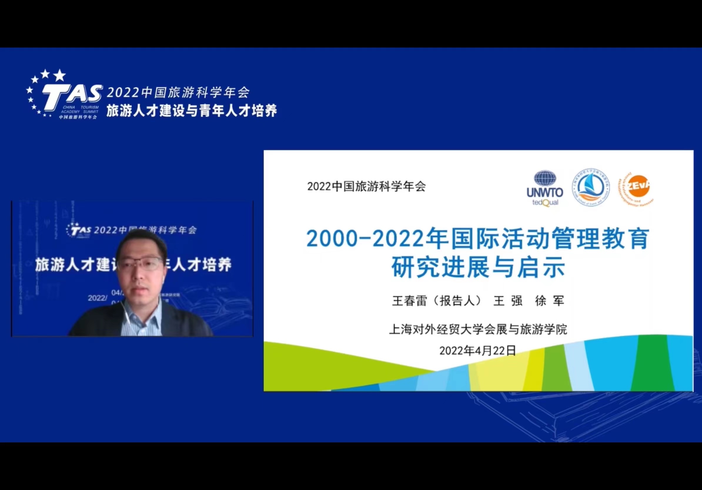 本次年會共收到會議論文104篇,作者單位覆蓋部屬高校、地方院校、職業(yè)院校、科研院所、行業(yè)協(xié)會等不同性質(zhì)單位。經(jīng)過專家多輪評審,共評出21篇獲獎論文,其中一等獎3篇,二等獎5篇,三等獎13篇(具體名單見附件)。由我院院長王春雷教授和校友王強、旅游管理專業(yè)2021級研究生徐軍共同撰寫的《2000-2022年國際活動管理教育研究進展與啟示》獲得二等獎。22日上午,王春雷老師代表團隊做了交流發(fā)言,受到點評專家和各方好評。