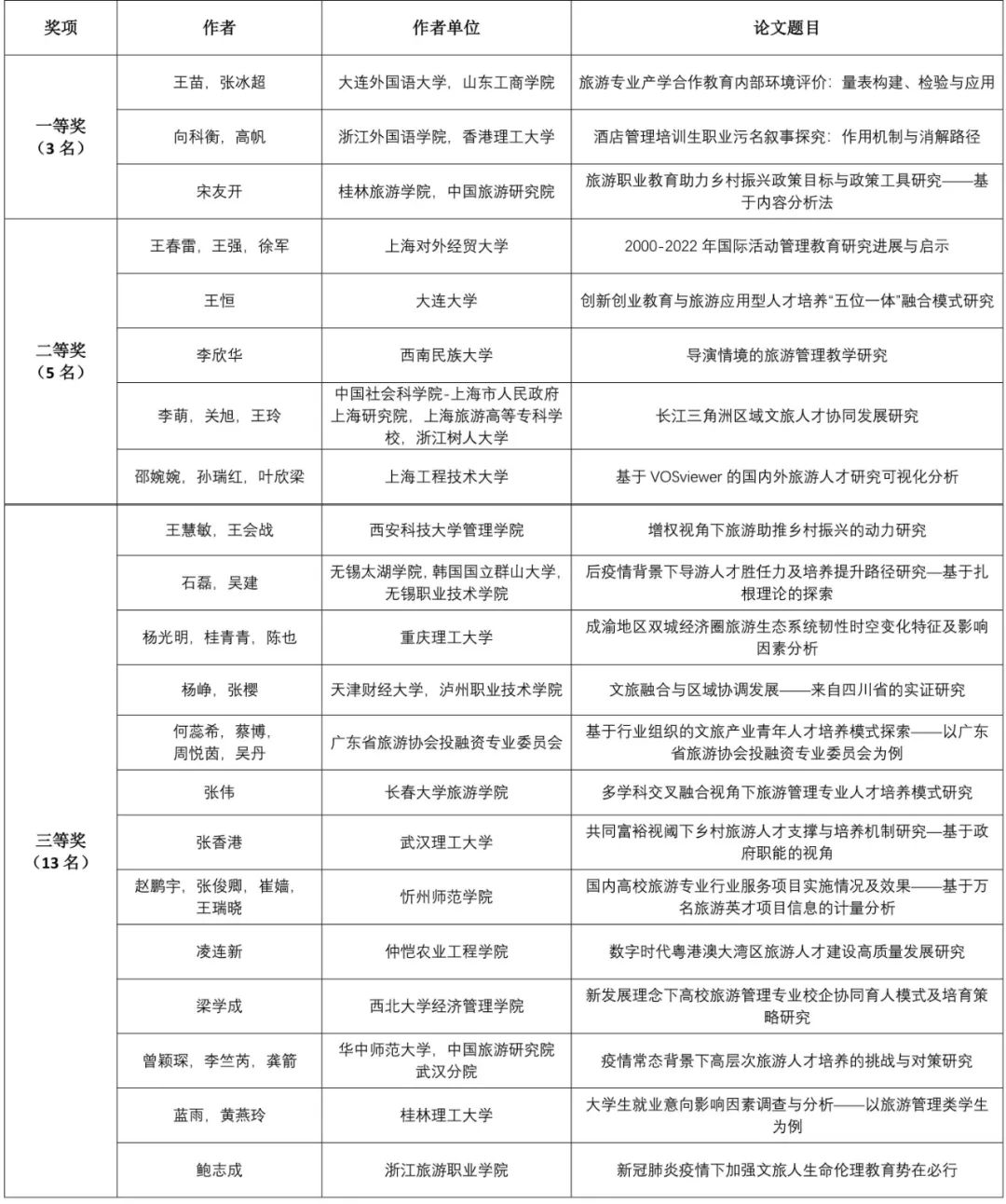 附:2022中國旅游科學年會優(yōu)秀論文獲獎名單