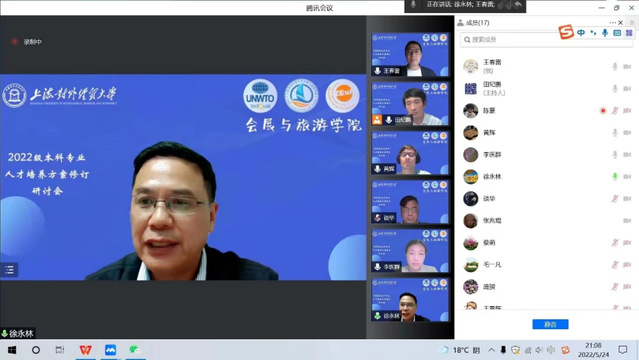 5月24日晚,會(huì)展與旅游學(xué)院舉行2022級(jí)本科人才培養(yǎng)方案修訂在線研討會(huì)。學(xué)校副校長(zhǎng)徐永林出席會(huì)議并講話。教務(wù)處副處長(zhǎng)(主持工作)朱建明、副處長(zhǎng)李醫(yī)群及教學(xué)科老師、學(xué)院班子成員、專業(yè)主任、教工支部書(shū)記、骨干教師代表和教學(xué)秘書(shū)參加會(huì)議。會(huì)議由副院長(zhǎng)田紀(jì)鵬主持。