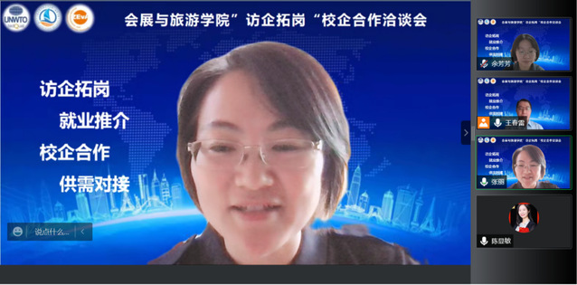 中青旅人力資源總監陳顯敏女士就疫情發生以來中青旅的業務發展情況進行了交流,中青旅目前正在大力發展智慧會展和數字營銷等線上業務,對于人才的需求也由傳統的線下業務人員轉為具備新媒體思維與技能的復合型人才。陳女士充分肯定了會展與旅游學院的學生素質,外語水平高,實踐能力強是鮮明的特點,今后學生可以在行業認知和擇業視野方面進一步提升。
