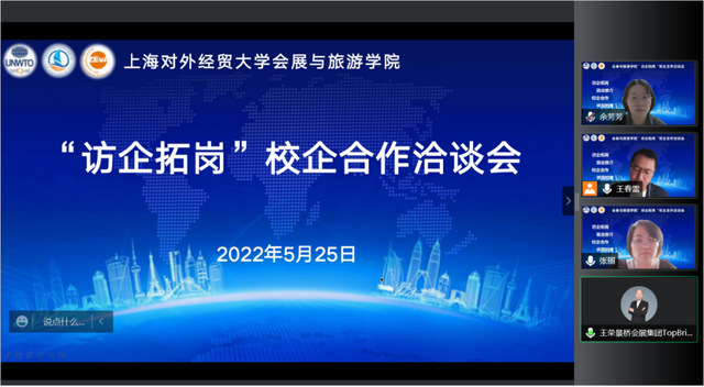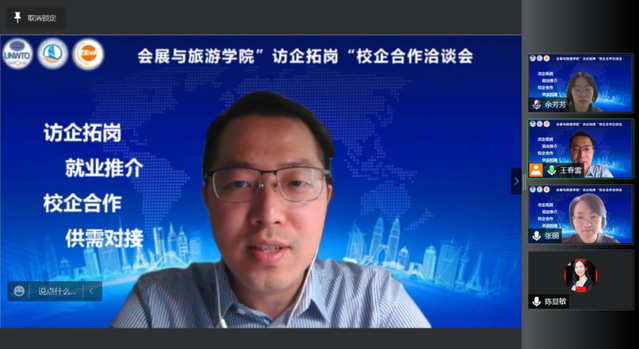 為貫徹落實黨中央、國務院關于高校畢業生就業工作的決策部署,落實學校關于開展院長、書記訪企拓崗促就業專項行動的通知,5月23日和5月25日下午會展與旅游學院分別邀請中青旅、博華國際、景橋集團三家企業進行在線洽談。雙方就各自單位近況、產學研合作、學生就業需求與企業招聘形勢展開溝通。中青旅上海分公司人力資源總監陳顯敏、博華國際人力資源總監傅敏、景橋集團董事長王榮、會展與旅游學院院長王春雷、黨總支副書記張麗以及畢業班輔導員余芳芳出席了洽談會。