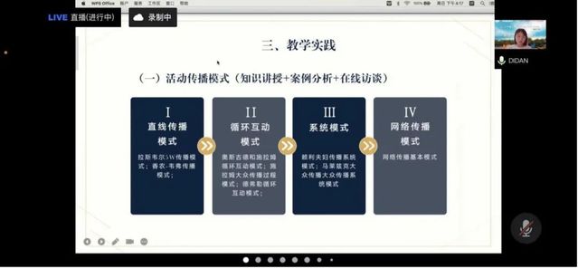 最后,上海對外經貿大學會展與傳播學院文學博士狄丹老師分享“《活動傳播》——傳播學視角下課程設計與實踐”主題內容。狄老師從傳播類會展課程構建出發,在課程設計、課程內容和教學實踐三個方面具體描述本門課程,狄老師提出活動傳播旨在精心策劃與目標明確的特殊事件中主體間的溝通活動,它與傳播學、活動學以及會展學等學科關聯緊密,以“知識體系化+案例多元化+調研產業化”模式綜合考慮教學內容設計,此外,以“天貓加油白襯衫”為例表達活動傳播課程的重要作用。