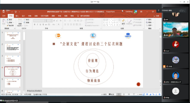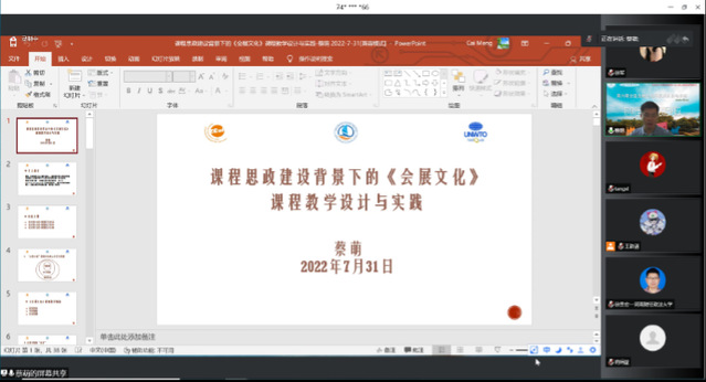 2022年7月31日,經過一天的課程分享,第六期全國會展雙實務培訓班課程圓滿結束。今天的課程分享主要圍繞“課程教學示范與不同學科融入”這一主題展開,分享人均來自上海對外經貿大學會展經濟與管理系,他們向參會老師們展示了在自身教學過程中的所思、所見、所感。在整個培訓過程中,參會老師們積極參與相關話題討論,各位老師紛紛表示受益良多,也期望培訓活動能持續舉辦。