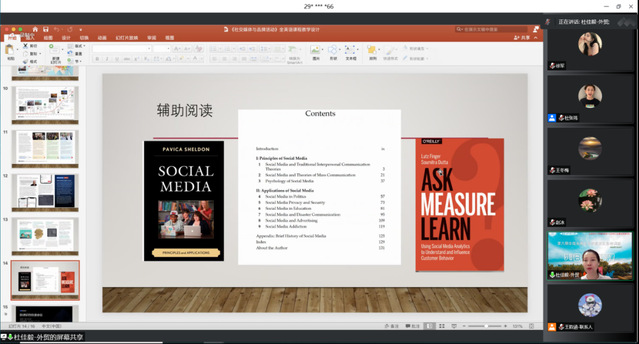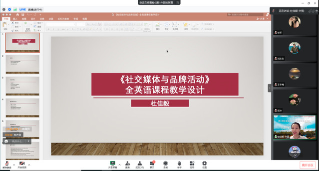 下午13點整,首先由上海對外經貿大學會展與傳播學院管理學博士杜佳毅老師為大家帶來主題為“《社交媒體與品牌活動》全英文課程教學設計”的分享。杜老師從教學實際要求出發,探索適合本門課程教學方法。在教學設計過程中以多主題、階段性學習為主線,教師講解主要觀點、學生對教學內容進行復述與展示、并在課后提供豐富閱讀資料。此外,杜老師熱心分享在教授此門課程中所使用到的三門參考資料和特色教學成果展示,從學生作業成果中認真總結、加以對課程教學設計的反思。