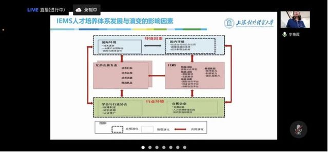 接著,上海對外經貿大學會展與傳播學院管理學博士李艷霞老師以“會展人才培養體系創新”為主題為大家帶來精彩分享,李老師回顧自2004年IEMS招收首屆學生以來有諸多感悟,在這個過程中,會展人才培養體系的勾勒也越發明晰。從共演理論視角,李老師闡述了IEMS人才培養體系的邏輯基礎、發展與演變的影響因素以及IEMS人才培養模型,從培養目標、培養過程和培養資源三個方面具體分享IEMS人才培養的具體內容,并表示學界、行業和學生三者之間積極溝通、有效反饋是會展人才體系不斷優化和創新的動力源泉。