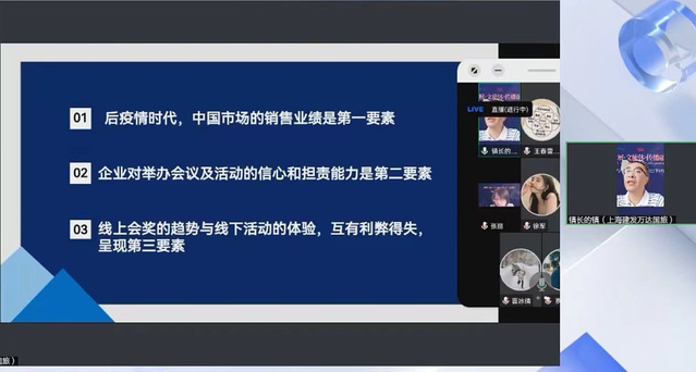 在兩位嘉賓演講結束后,張麗博士和嘉賓們進行了交流,兩位嘉賓就自身所在企業在疫情期間的努力和創新、線上活動運營的經驗、疫情后會獎行業的發展趨勢以及對想要進入會展和會獎行業的大學生的建議和期盼等話題做了回應。