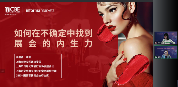中國美容博覽會(CBE)執行主席、上海市日用化學品行業協會副會長、上海市靜安區政協委員桑瑩女士的演講題目是《如何在不確定中找到展會的內生力》。桑瑩女士側重圍繞以下話題做了精彩分享:在疫情常態化的現階段,展會面臨著諸多不確定性,但是否還有向上發展的空間?展會的未來在哪里?在線下活動受限的當下,會展公司要怎么做,才能找到發展的內生力?她給出的答案是明確發展的確定性因素,增強企業的抗風險能力,熬過至暗時刻,以待生長。最后,桑瑩女士分享了所在公司線上業務的運營模式,并呼吁會展行業要加強合作,抱團取暖,一起維護市場信心,實現共同進步和發展。演講結束后,張兆琨博士和桑瑩女士圍繞“對于比較傳統的會展公司,應該如何做好盤活存量和激活增量?”這一問題進行了互動交流。