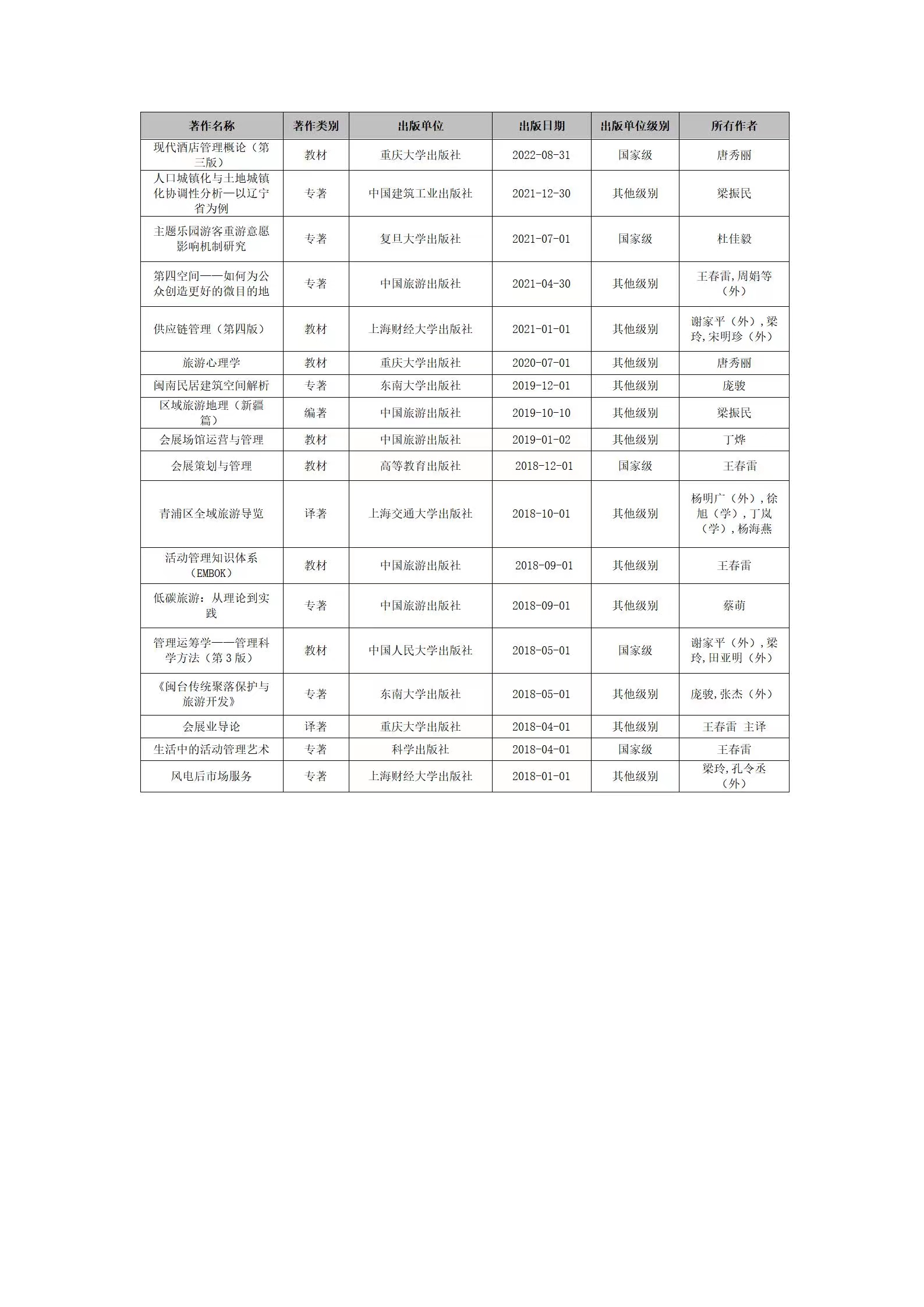 2018-2022年會展與傳播學院專著、譯著和教材成果信息一覽表
