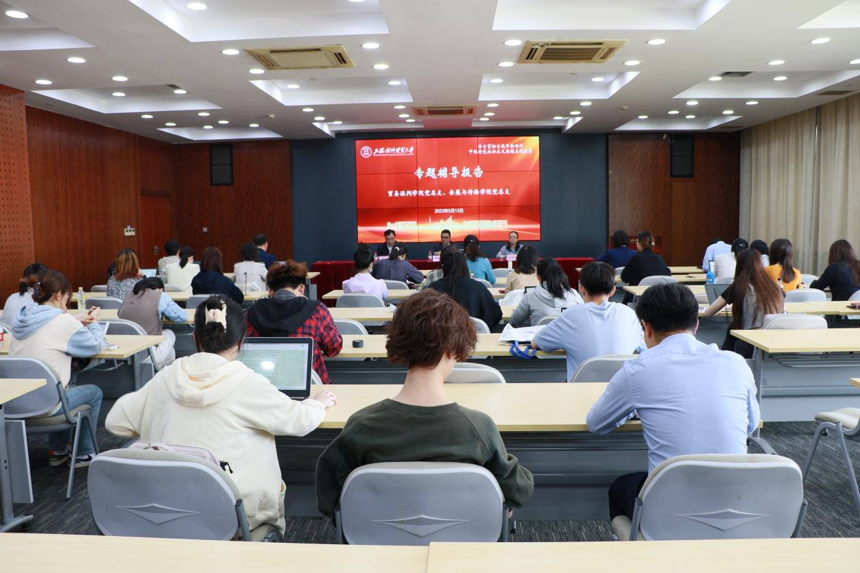 為扎實推進主題教育,抓好理論學習,5月12日下午,會展與傳播學院黨總支和貿易談判學院黨總支在信息樓503會議室開展聯組學習。邀請我校國際戰略與政策分析研究所所長、南亞和印度洋研究中心主任郭學堂教授作題為“百年變局與中國國際戰略的選擇”的專題輔導報告。兩個學院的班子成員和黨員師生一起參加。
