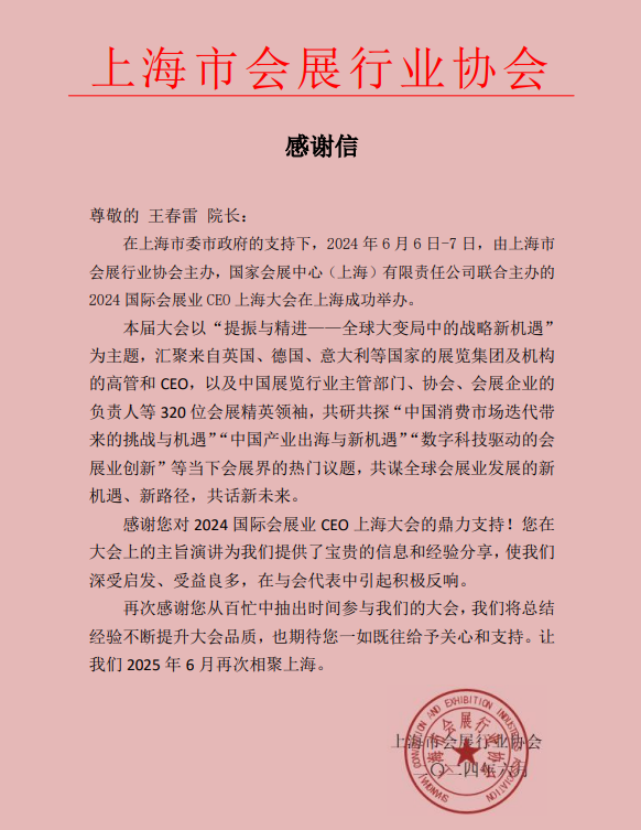 院長王春雷教授應邀在2024國際會展業CEO上海大會上發表主題演講
