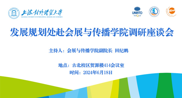 為更加深入地了解學院發展的新思路、新舉措、存在的瓶頸問題和訴求,聽取學院對《上海對外經貿大學高質量發展三年行動計劃(2024-2026年)(征求意見稿)》的意見和建議,2024年6月18日,學校發展規劃處副處長(主持工作)趙倩一行3人到會展與傳播學院進行專題調研。學院領導班子成員參加調研座談會,會議由學院副院長田紀鵬主持。