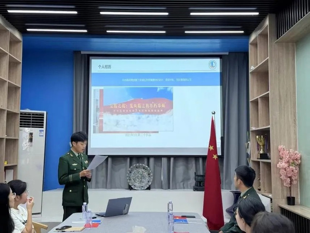 為慶祝新中國成立75周年,深入學習貫徹習近平新時代中國特色社會主義思想,高舉中國特色社會主義偉大旗幟,激發廣大黨員的愛國熱情,2024年9月29日中午,“退役不褪色,黨員先鋒行”主題黨日活動在博聞樓106會議室順利召開。活動旨在弘揚退役軍人在新時代的先鋒模范作用,加強支部黨員的責任感和使命感。本次活動由研究生第二黨支部書記侯淑怡主持。