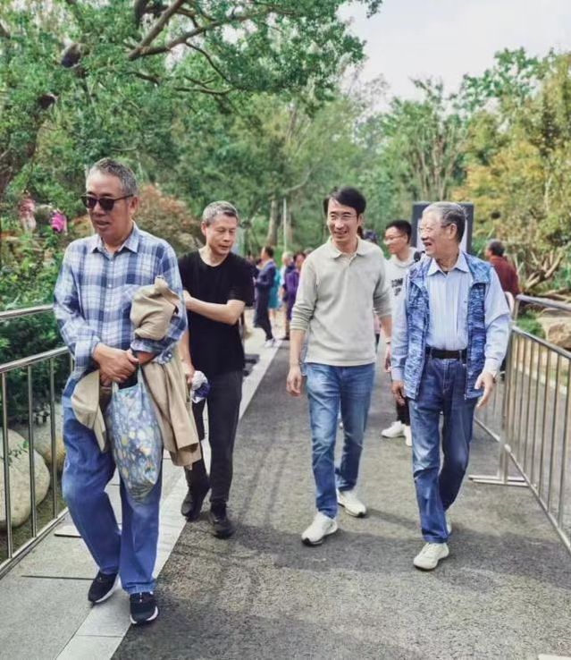 隨后老同志們來到了雙子山,雙子山由48米高的主峰和37米高的次峰組成,山體遍布喬木,郁郁蔥蔥,綠意盎然。老同志們沿著盤山步道來到山頂觀景平臺登高望遠,山腳下亞洲最大溫室花園、中心湖、十一孔橋景觀、遠處的城市天際線和盧浦大橋、南北高架以及黃浦江兩岸美景盡收眼底。