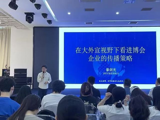 在訓練營講座環節中,原任騰訊財經副主編、現為IPO早知道、財經涂鴉、元氣資本等財經欄目主理人的暴劍光,以《在大外宣視野下看進博會企業的傳播策略》為題,深入剖析了中國IP在全球傳播中的重要作用,以及科技如何成為連接世界的共同語言。暴老師的演講不僅拓寬了同學們的視野,也激發了大家對新聞傳播與文化傳播深度融合的思考。