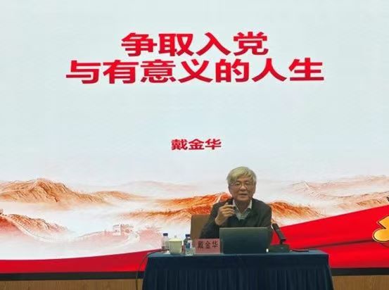 活動伊始,田紀鵬對戴金華老師表示熱烈歡迎,并介紹了戴老師工作經歷。戴老師作為一位為學校發展貢獻38年的老黨員,不僅長期從事黨建工作,具有極高的黨性修養,而且退休后一直非常關心青年同學的發展,對青年學生成長成才有著獨到的認識和思考。
