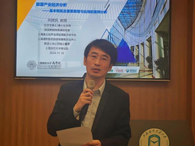 為提升旅游管理專業研究生對旅游產業經濟的分析能力,會展與傳播學院于11月16日邀請上海財經大學何建民教授帶來《旅游產業經濟分析—基本框架及重要原理與應用的案例分析》專題講座。全體旅游管理學碩和專碩(MTA,全日制/非全)同學參加,講座由學院黨委副書記(主持工作)田紀鵬主持。