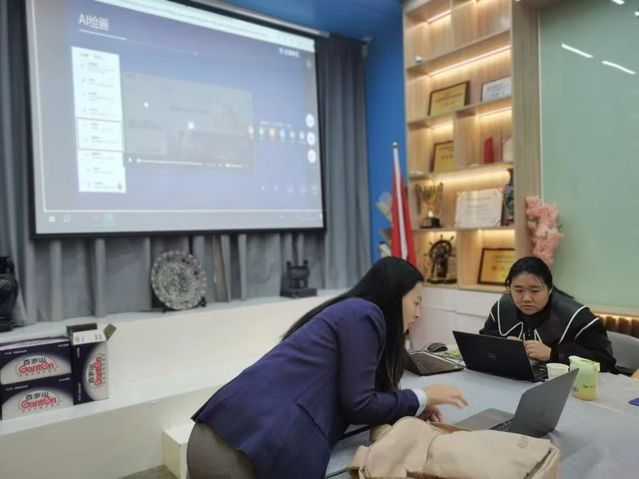 活動(dòng)中,各位教師攜帶電腦進(jìn)行實(shí)踐操作練習(xí),如利用AI工具積極響應(yīng)班級(jí)群活動(dòng)等,并與各自教授的課程相結(jié)合,嘗試使用AI編寫教案、出題、AI助教等功能。
