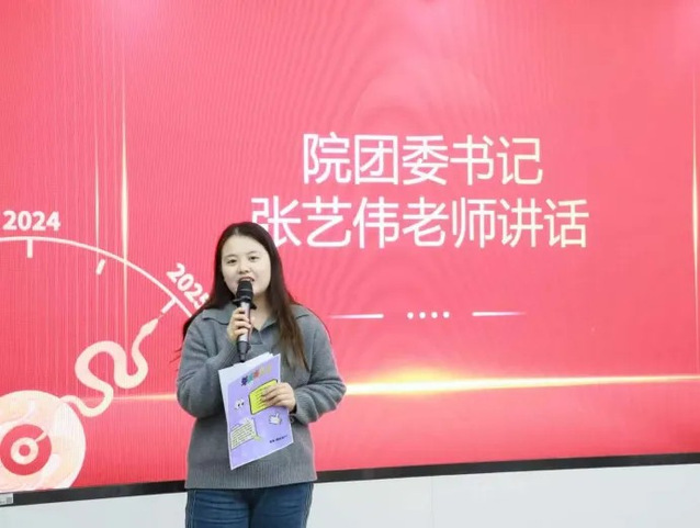 之后,由院團(tuán)委書記張藝偉老師發(fā)表講話。她先指出了各個(gè)部門的亮點(diǎn),對(duì)本學(xué)期工作進(jìn)行了充分肯定。接著,張藝偉老師表示團(tuán)學(xué)工作仍有進(jìn)步空間,應(yīng)改進(jìn)不足,進(jìn)一步提升影響力。最后,老師表達(dá)了對(duì)未來團(tuán)學(xué)工作的期許。
