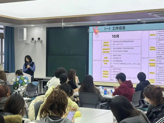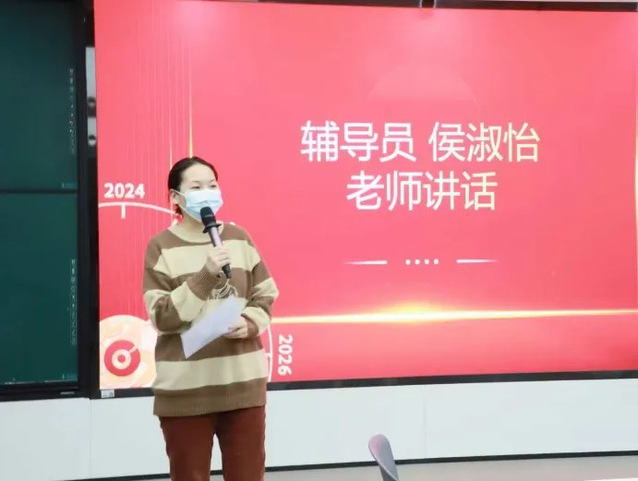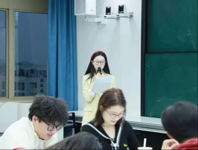 在各個(gè)部門述職結(jié)束后,先由輔導(dǎo)員侯淑怡老師發(fā)表講話,她指出當(dāng)前團(tuán)學(xué)工作缺少留痕,現(xiàn)場(chǎng)圖片呈現(xiàn)較少,并針對(duì)這些方面提出建議。最后,侯淑怡老師表達(dá)了對(duì)團(tuán)學(xué)未來工作的祝愿。