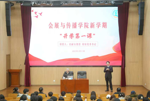 為深入學(xué)習(xí)貫徹黨的二十屆三中全會(huì)精神,全面貫徹落實(shí)全國(guó)教育大會(huì)精神,以深化專業(yè)融合發(fā)展促進(jìn)學(xué)風(fēng)建設(shè),3月11日,會(huì)展與傳播學(xué)院邀請(qǐng)學(xué)校原黨委書(shū)記皮耐安教授為師生講授新學(xué)期“開(kāi)學(xué)第一課”。活動(dòng)由學(xué)院黨委副書(shū)記(主持工作)田紀(jì)鵬主持。全體2023級(jí)、2024級(jí)本科生和研究生參加學(xué)習(xí)。