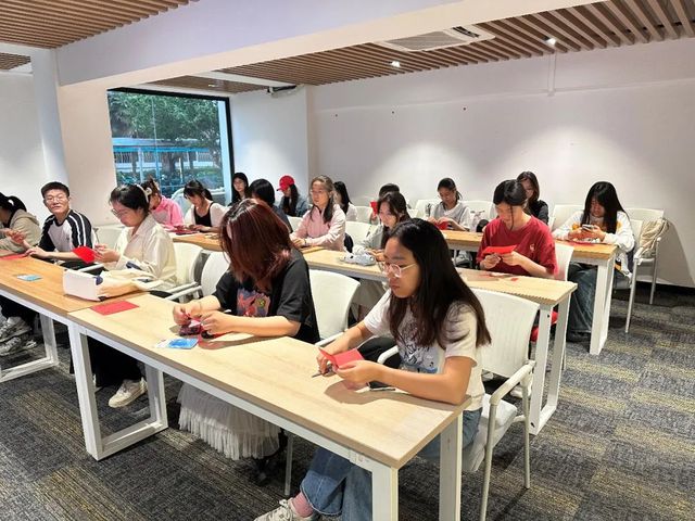 本次活動還設(shè)置了剪紙體驗環(huán)節(jié),讓同學(xué)們親身感受非遺技藝的魅力。大家手持剪刀,全神貫注地在紅紙上裁剪出精美的圖案,靈動的線條與對稱的構(gòu)圖展現(xiàn)了海派剪紙的獨特韻味。同學(xué)們在動手實踐中不僅體會到傳統(tǒng)手工藝的精妙,也用自己的創(chuàng)意為剪紙藝術(shù)注入了現(xiàn)代活力,體現(xiàn)了非遺文化的當(dāng)代價值。