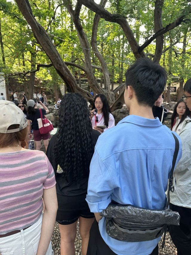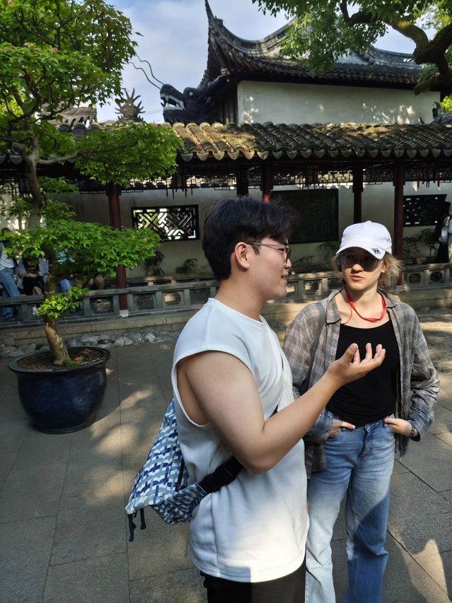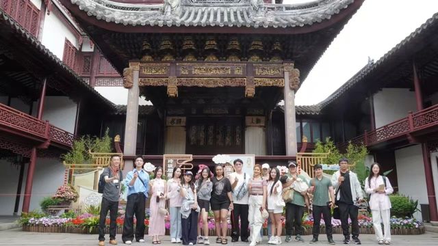 2025 年 5 月 25 日,旅游管理專業在豫園開展了一場模擬導游實踐活動,活動由旅游管理專業學生擔任導游,全程使用英語為國際留學生提供講解服務。