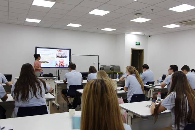三周時間里,國際生學(xué)員們聆聽了由上海對外經(jīng)貿(mào)大學(xué)多個學(xué)院、校外合作機(jī)構(gòu)和企業(yè)參與設(shè)置的六場高水平專題講座,形成“制度-產(chǎn)業(yè)-文化”三層知識架構(gòu)。