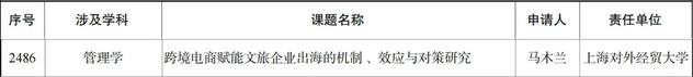 2025年9月5日,全國哲學社會科學工作辦公室發布《關于2025年國家社會科學基金年度項目立項名單的公示》。我院馬木蘭副教授申報的《跨境電商賦能文旅企業出海的機制、效應與對策研究》獲管理學學科一般項目立項。