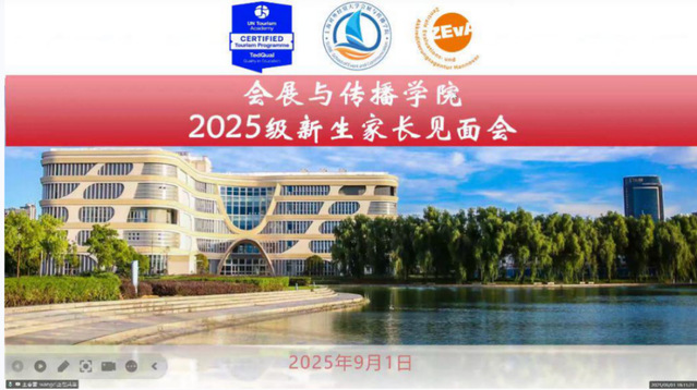 旅游管理系主任張兆琨、會展經(jīng)濟與管理系主任黃輝、新聞與傳播系主任狄丹,分別介紹了各專業(yè)的特色發(fā)展、國際化合作、產(chǎn)教融合項目等,為新生家長全面解答專業(yè)學習和未來發(fā)展路徑等疑惑。