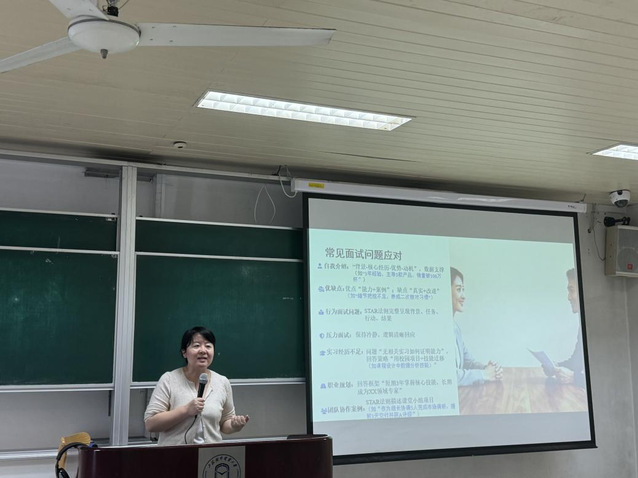 在面試技巧分享環節,朱老師深入剖析了自我介紹、行為面試、壓力面試等常見形式的應對策略。她建議同學們提前進行模擬練習,提升表達與應變能力,尤其要注重眼神交流、語速控制與邏輯清晰。此外,她特別提醒同學們關注面試禮儀與職業形象,從著裝、妝容到時間規劃,細節之處見真章。