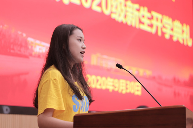 陸欣悅作為本科新生代表發言表示,夢想的高度決定人生的高度,站在大學生涯的起點,應立鴻鵠志追夢,做奮斗者圓夢。作為新一代上經貿大會計學院學子,更應該本著“飲水思源,砥礪奮進”的貿大精神,不懈努力,擴充專業知識、提高專業技能、增強綜合素質。