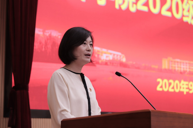 會計學院黨委副書記張晴晴代表學院全體教職員工向來自天南海北的235名本科新生和142名研究生新生表示了熱烈的祝賀和歡迎。典禮開場播放了2020級新生入學歡迎視頻《你好,大學!》,新同學踏入校園、自主報到的身影洋溢著青春的昂揚與自信,學長學姐的寄語也充滿了對他們的鼓勵與祝福。