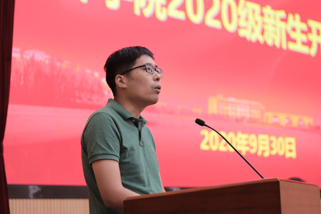 教師代表孫淑偉寄語新生,要待人以誠,要有懷疑和探索的精神,要學會通過自我約束建立起自己的信心,鼓舞大家用最美好的年華在這里書寫青春、演繹奮斗。