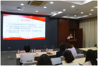 會計學院副院長楊慧輝教授從會計文化和會計精神的角度,做了題為《堅守會計精神,不負時代重托》的黨課講授。她講到,精神是立身、強業(yè)的支柱,是凝聚中國力量、弘揚中國文化的必要支撐。會計精神更是體現(xiàn)了我國財會人才的精神品質和財會文化自信。并寄語會計學子在日后的工作崗位中不負時代重托,牢記會計人優(yōu)秀品質,樹立正確的價值觀、義利觀、得失觀,強化超然獨立、與時俱進、廉潔自律的優(yōu)秀品質,發(fā)揚傳承“誠信、寬容、博學、務實”的校訓精神,誠信立業(yè)、誠信立身。