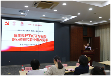 為緊貼專業(yè)特色深入推進“四史”學習教育,11月4日下午會計學院黨委在信息樓503開設了題為“感悟傳承會計精神,精進專業(yè)經世報國”的“中國精神薪火相傳,偉大復興再啟征程”“四史”學習精品黨課。會計學院黨委副書記張晴晴、副院長楊慧輝、會計系教授鄔展霞、普華永道華中區(qū)校園招聘經理陳琳及黨員、新生代表共同參加了此次專題黨課。